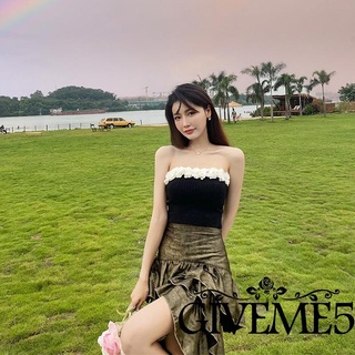 GIVEME-Women´s Tube Tops, Flower Neckline Sleeveless Strapless Slim Fit Ribbed Summer Tops