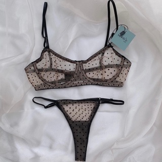 Bộ Đồ Lót Nữ iBRA Áo Ngực ren và Quần Lót Ren Xuyên Thấu Chấm Bi sexy, Lưới mỏng Thoáng Khí quyến rũ a9