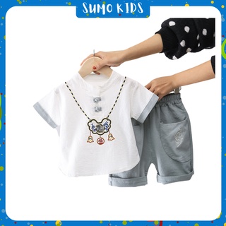 Bộ cộc tay bé trai in vòng cổ chất đũi xốp cao cấp cực xinh cho bé từ 7-28kg - SUMO KIDS