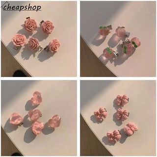 Set 5 Kẹp Tóc Hình Nơ / Hoa Hồng / Trái Tim Mini Dễ Thương Cho Nữ