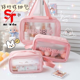 Túi Đựng Mỹ Phẩm Đồ Trang Điểm Du Lịch Sét 3 Trong Suốt WASHBAG Nhiều Kích Thước Màu Hồng Chống Thấm Nước
