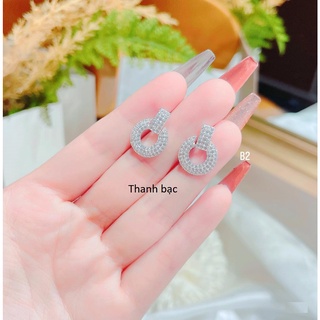 Bông tai bạc 925 đính đá sáng hàn quốc, bông tai viền đá