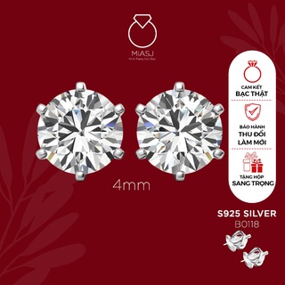 Bông tai nữ Bạc Ý S925 MiASJ khuyên nụ tròn 4 chấu basic, bông chốt vặn xoàng trang sức bạc cao cấp - B0104