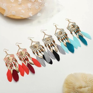 bông tai lông vũ, khuyên tai dân tộc phong cách vintage