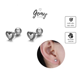 Khuyên tai nam nữ bạc mặt hình trái tim chốt vặn đơn giản, unisex Black Heart (1 chiếc) | GEMY SILVER KN24