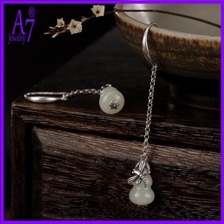 Bông Tai Bạc 925 Hình Quả Bầu Đính Đá Ngọc Bích Thời Trang Cho Nữ