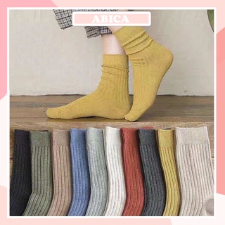 Tất vớ nữ nam cổ cao nhún màu trơn chất len tăm cao cấp siêu mềm thoáng khí phong cách Ulzzang Hàn Quốc ABICA TD038