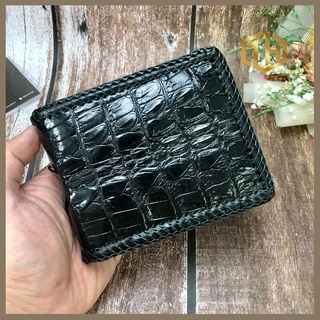 Ví Da Cá Sấu Khâu Viền 2 Mặt Da Lưng, Bóp Nam Da Cá Sấu Đan Viền Thủ Công Màu Đen, Kiếu Dáng Ngang - BH 24 Tháng