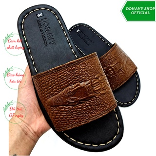 Dép Quai Ngang Nam Da Bò 100%, Quai Cá Sấu Đế Nhện D.csdn.