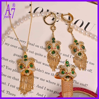 Bộ Vòng cổ + Khuyên Tai Kiểu Mở Hình Sư Tử Cổ Điển A7 18K