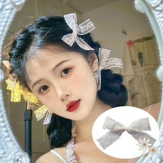 Kẹp tóc thắt nơ bằng vải ren màu trắng đơn giản dễ thương dành cho nữ