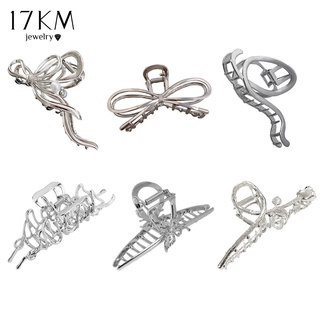 Kẹp tóc càng cua 17KM màu bạc thiết kế nhiều mẫu tùy chọn đơn giản xinh xắn dành cho nữ