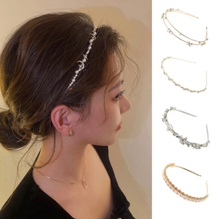 Băng Đô Cài Tóc Bằng Hợp Kim Mỏng Đính Đá & Ngọc Trai Phong Cách Hàn Quốc Cho Nữ