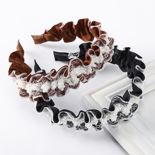 Băng Đô Cài Tóc Bản Rộng Đính Hạt Ngọc Trai Phong Cách Hàn Quốc Thời Trang Cho Nữ