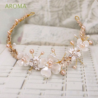Băng Đô Cài Tóc Bằng Hợp Kim Mỏng Đính Đá & Ngọc Trai Hình Hoa Phong Cách Hàn Quốc