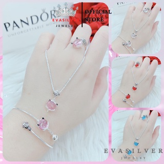 Bộ trang sức bạc hồ ly gắn đá phong thủy gồm 3 món, Dây chuyền, Lắc tay, Nhẫn - Trang sức bạc Evasilver