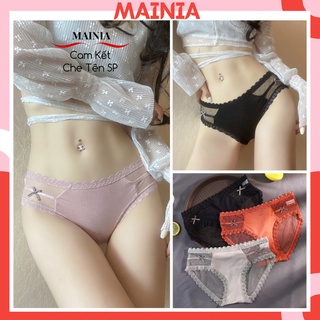 Quần Lót Nữ Cotton Phối Ren Xuyên Thấu Đính Nơ Hông Sexy Gợi Cảm Cao Cấp Mainia Shop