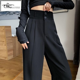 Quần Dài Ống Rộng Lưng Cao Màu Đen Phong Cách Hàn Quốc Thời Trang Xuân Thu Cho Nữ