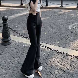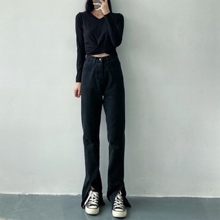 Quần jeans SUXI đen lưng cao ống loe xẻ tà thời trang xuân thu cho nữ