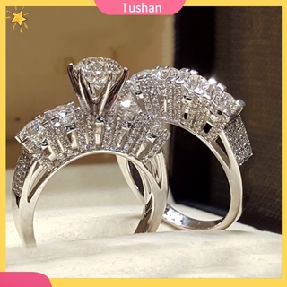 2 nhẫn đính đá nhân tạo sang trọng dành cho đám cưới đính hôn cặp đôi quà tặng trang sức
