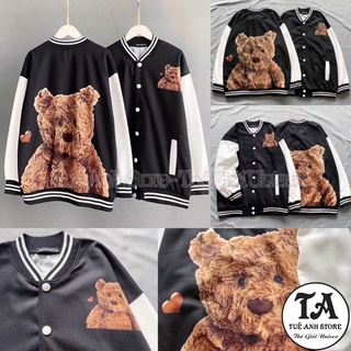 Áo Khoác Bomber Nam Nữ Bóng Chày Unisex In Gấu 2 Mặt Phong Cách Hàn Quốc Chất Nỉ Dày Đẹp Cardigan 3 size M L XL