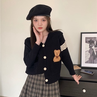Áo Khoác Cardigan Dệt Kim Thêu Hình Gấu Xinh Xắn Cho Nữ