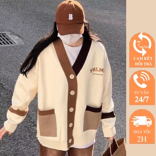 Áo khoác len cardigan thêu chữ dáng rộng phong cách Hàn quốc KL16