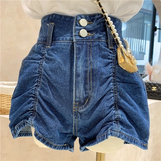 High-waisted pleated denim shorts for women in 2022, the new summer style is loose and thin, wearing wide-legged a-word hot pants
