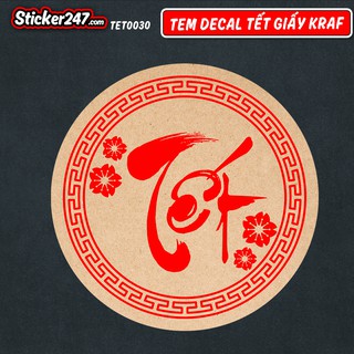 Tem Tết 𝑭𝒓𝒆𝒆𝒔𝒉𝒊𝒑 Decal Chữ Tết Hình Tròn - Decal Giấy Kraft Vintage Sang Trọng, Trang Trí Tết - TET15