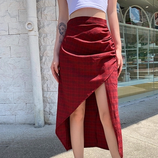 DUNEA Chân váy caro thời trang nữ tà bất đối xứng