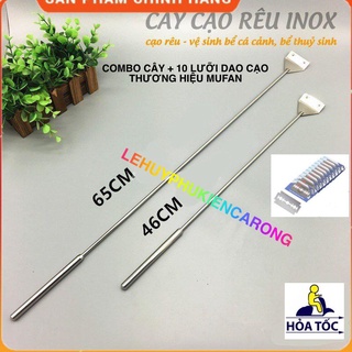 Cây Cạo Rêu Inox Mufan Kích Thước 46cm 65cm Tặng Kèm 10 Lưỡi Dao - Cạo Rêu Cho Bể Cá Cảnh, Thuỷ Sinh