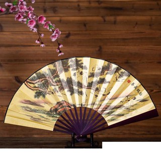 Quạt cổ phong cảnh 31cm HẠC VÀ CÂY nam nữ nan dài in họa tiết đẹp phong cách cổ trang cosplay