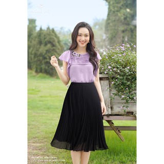 Chân váy voan nữ Hongvic đen rẻ quạt CV69