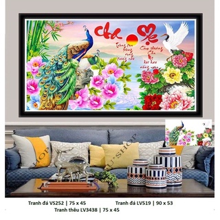 Tranh đính đá cha mẹ 110x50cm, tranh chưa đính và chưa khung