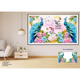 Tranh đính đá đồng hồ cha mẹ KT:75x45cm. Tranh gắn đá chưa đính.