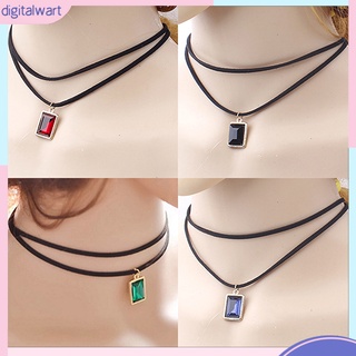Vòng cổ 2 lớp mặt đính đá nhân tạo hình vuông sang trọng dành cho nữ
