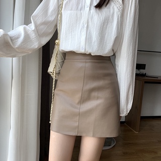 Jiashucheng Chân Váy Da Chữ a Lưng Cao Dáng Ôm Thời Trang Thu Đông Cho Nữ