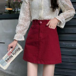Chân Váy Denim Chữ a Lưng Cao Thời Trang Retro Hàn Quốc