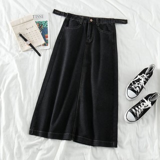 Chân Váy Jean Chữ a Lưng Cao Xẻ Tà Thời Trang Hàn Quốc