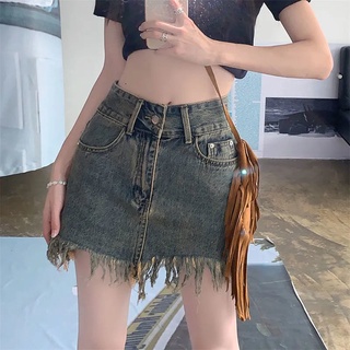 「 WELOVE1 」Chân váy jean Ngắn Dáng Ôm Không Đều Gợi Cảm