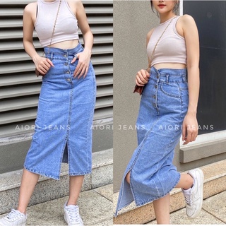 Chân Váy Jean Aiori Lưng Cao Dáng Dài Chữ A 4 Nút Thời Trang Cao Cấp Cho Nữ Váy Cotton Cao Cấp Mềm Mịn_Mã V0905