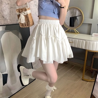 Jiashucheng Chân Váy Chữ a Lưng Cao Xếp Tầng Màu Trắng Phong Cách Pháp Dễ Phối Đồ