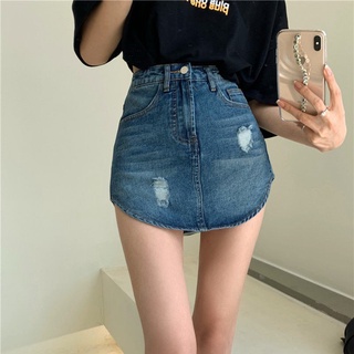 Chân váy denim dài ngang hông lưng cao thời trang mùa hè 2021