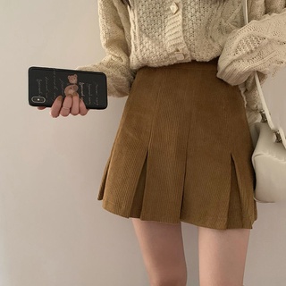 Chân váy nhung tăm xếp ly đuôi cá chữ A kiểu dáng hàn quốc