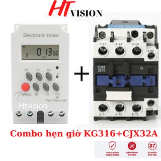 Combo bộ công tắc hẹn giờ KG316 T-II và Contactor công suất lớn 32A sử dụng điện 1 pha và 3 pha giúp hẹn giờ bật tắt