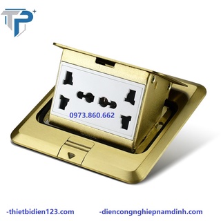 Ổ cắm âm sàn cao cấp mặt đồng đúc nguyên khối - 5 lỗ, 6 lỗ đa năng + hạt mạng
