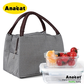 Túi Đựng Hộp Cơm Trưa ANAEAT Chất Liệu Canvas Giữ Nhiệt Kẻ Sọc Thiết Kế Tiện Dụng Để Mang Đi Dã Ngoại Dành Cho Bé