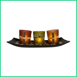Bộ 3 Đèn LED Nhấp Nháy Hình Lá Và Khay Đá Cuội Trang Trí Văn Phòng / Học Sinh