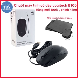 Chuột máy tính có dây Logitech B100 USB chính hãng ,tốc độ nhanh ,nút bấm nảy đàn hồi (tặng bàn di chuột)