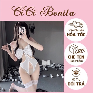 Đồ liền thân/ Đồ ngủ sexy nữ Bodysuit trắng đen phối nơ cực xinh CB20 CICI BONITA HCM